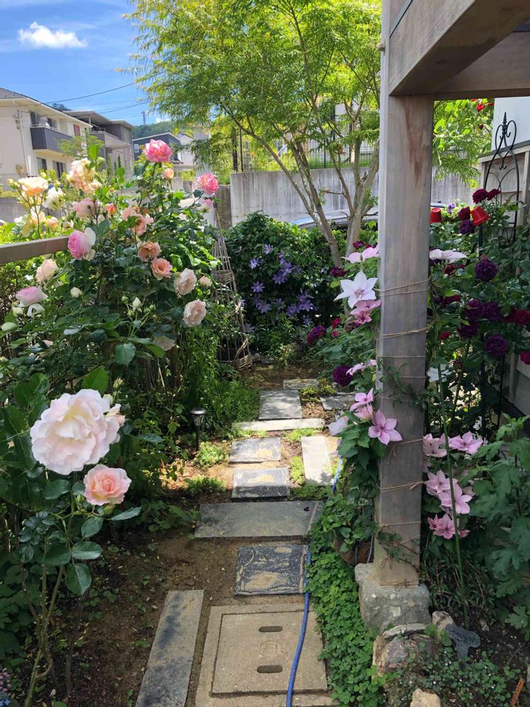 この間作った小道のバラが満開です🌹