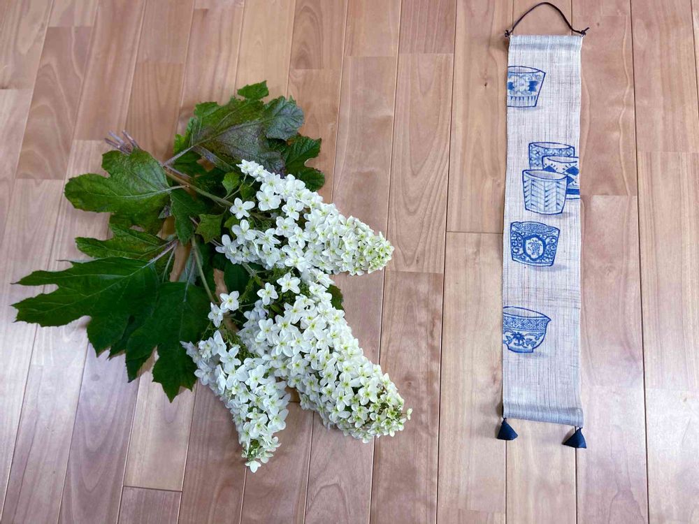 タペストリー「蕎麦猪口染付」