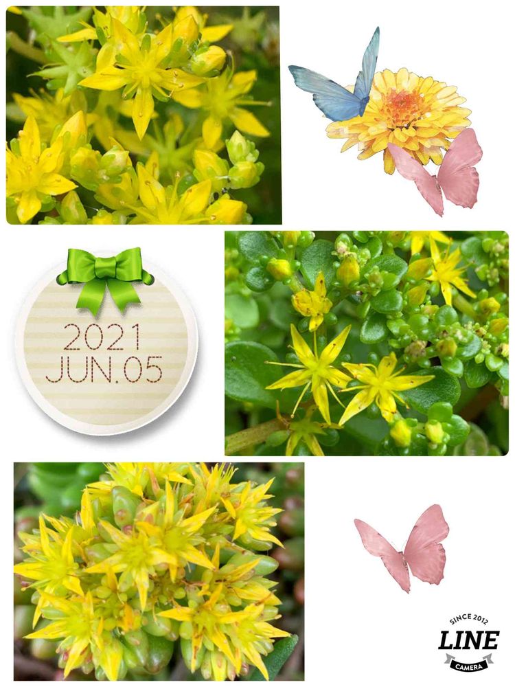 🔼タイトゴメ▶️マルバマンネングサ🔽虹の玉🌈葉っぱは違っても花はあまり変わらない🤣