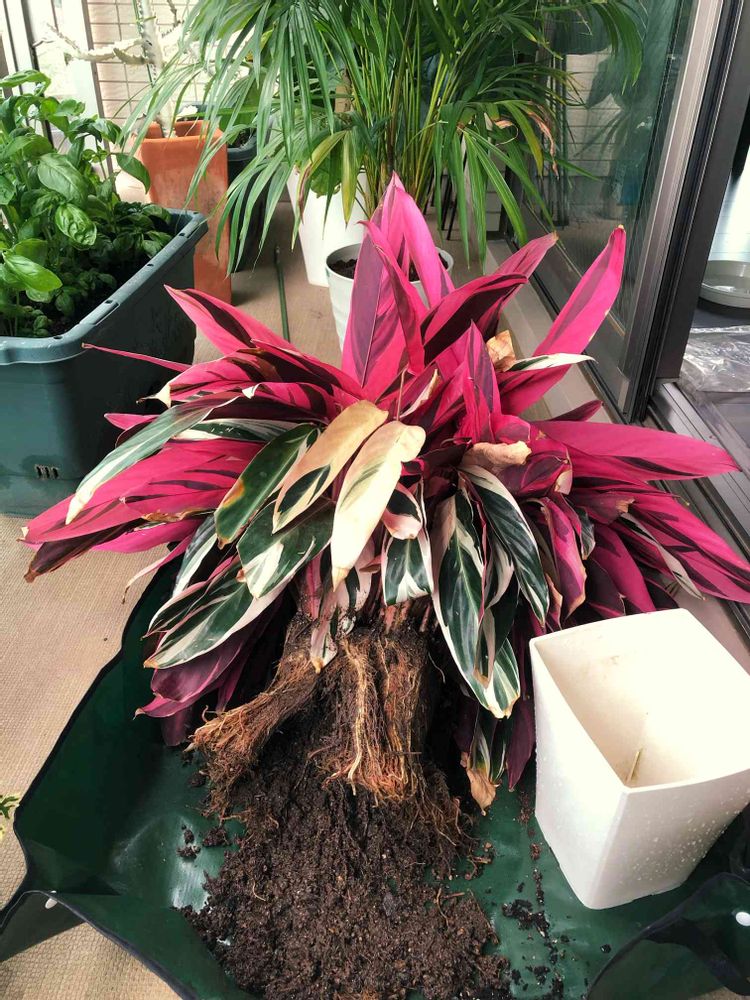 ストロマンテ・トリオスターさん、この頃葉っぱの横の方から枯れてきて調子悪いので植え替えしました👍