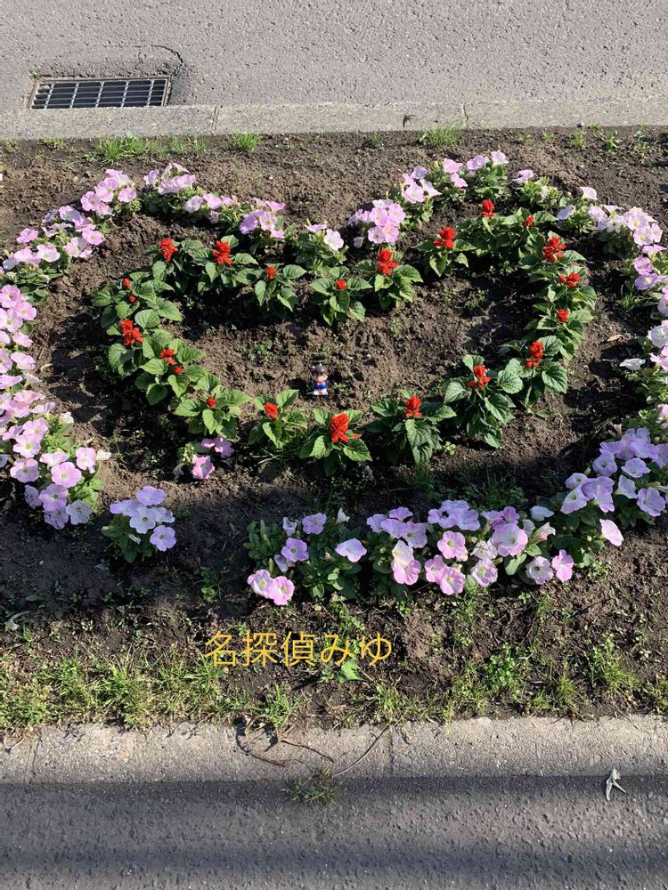 小学校前の道路沿いに植えられた花壇が、ハートの形をしています❤️