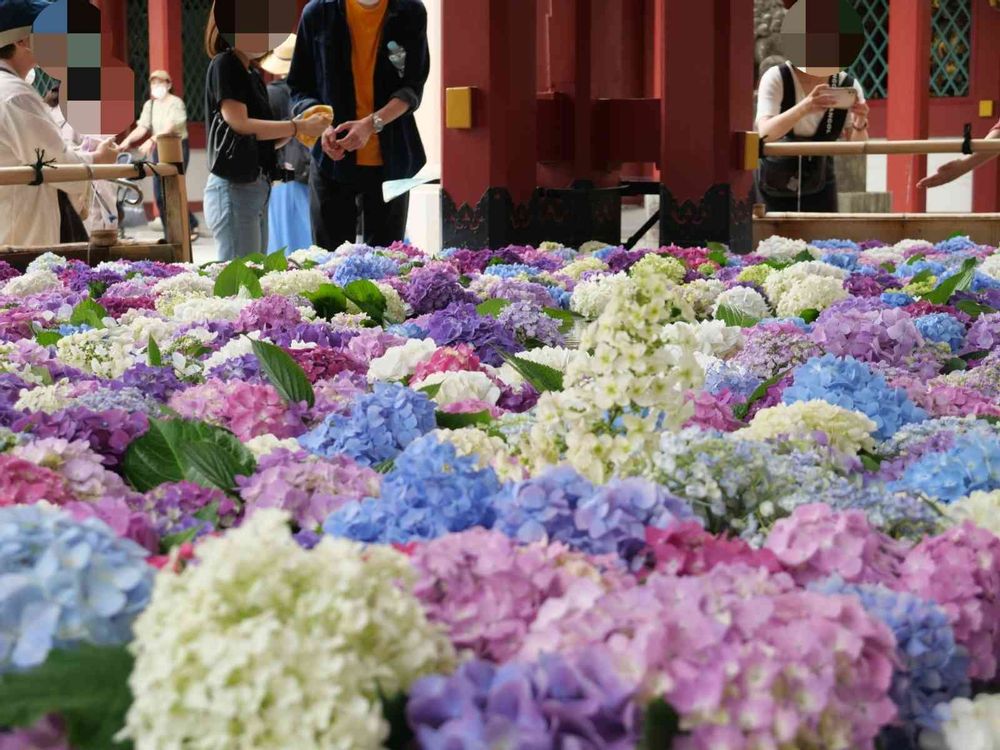 こんにちは。今も昔も沢山の人が訪れてくれます。昨年から始まった花手水は、訪れる人も地元の人も和ませてくれます😊