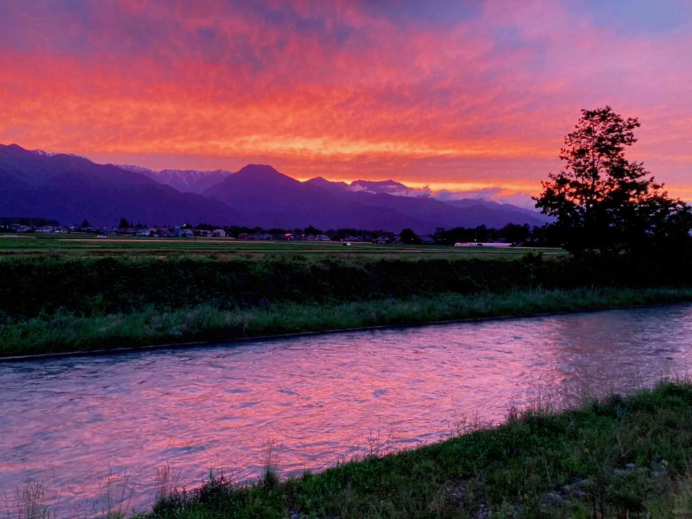 真ん中のシルエットは有明山ですね😍