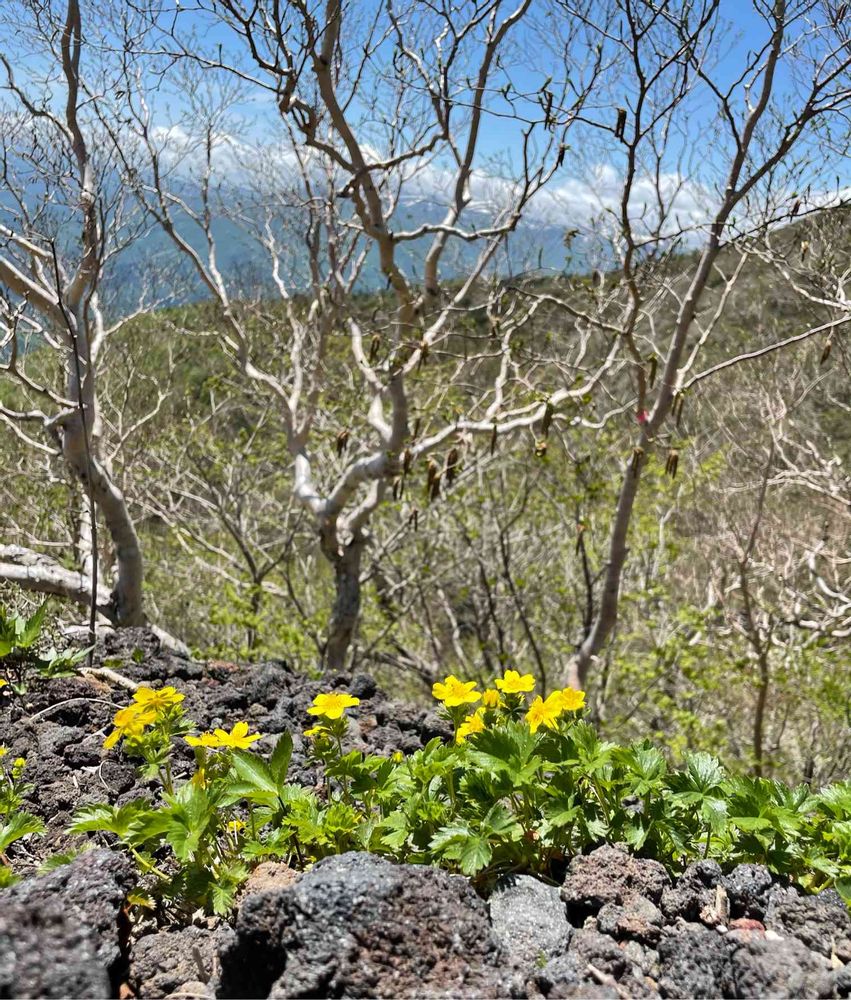 秋田駒ケ岳をバックに、ミヤマキンバイ♡