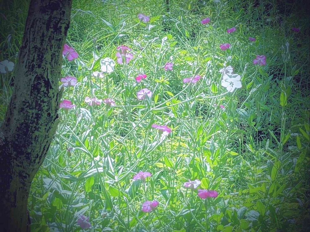 夕方斜面のフランネル草を写してスマホ遊びをしてみました。