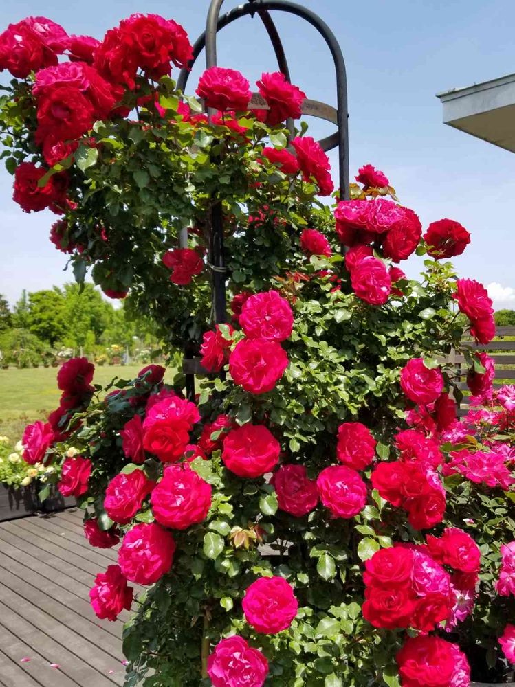 我が家はフェンス仕立てですがこんなに大きなオベリスク仕立てにもできるんですね❤️