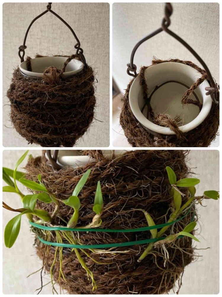 300円の滲み壺を同じ所で売ってたココナッツのシュロ縄❓で巻きました😊