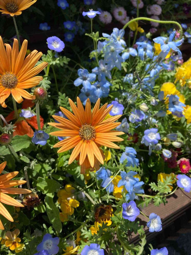 日向でのびのび咲いてる寄植えのお花🌼