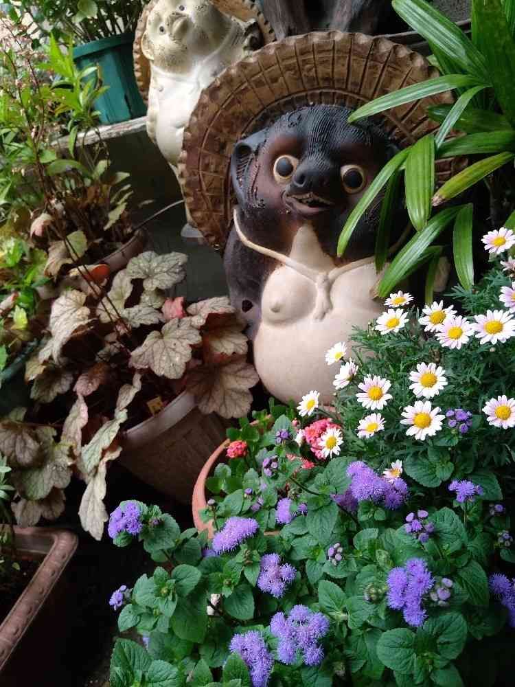 久々に我が家の信楽焼のタヌキさんとお花を~( ◠‿◠ )