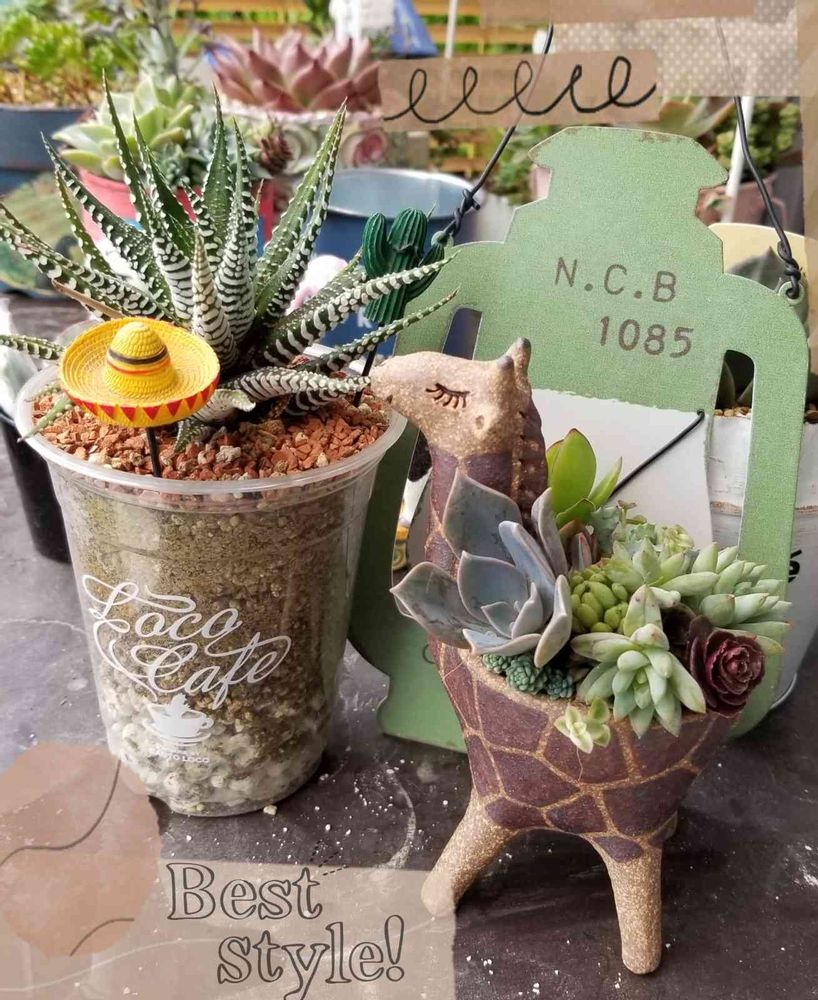 可愛い🦒プランターだね🌿😍‼️寄せ植えも言い感じ😉👍🌿‼️