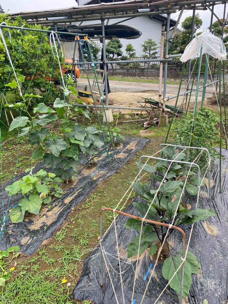 ネット・支柱・補助して、家庭菜園らしくなって来ました😊