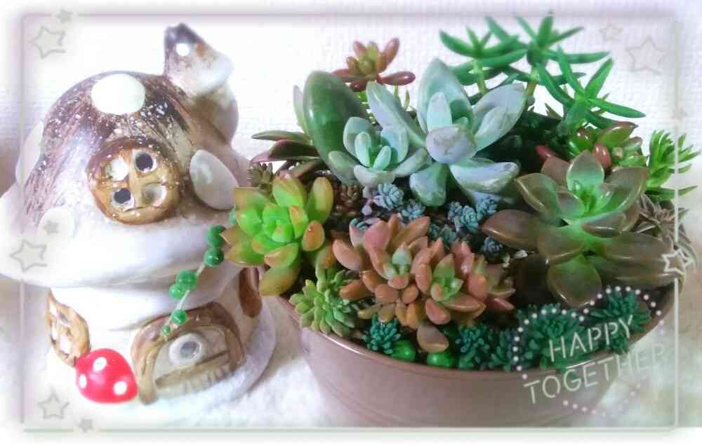 私も9月頃から多肉にはまり、ちょこちょこ?こっそり?(笑)増やしながら、GSのみなさんの寄せ植えを見たり育て方聞いたりしてきました。