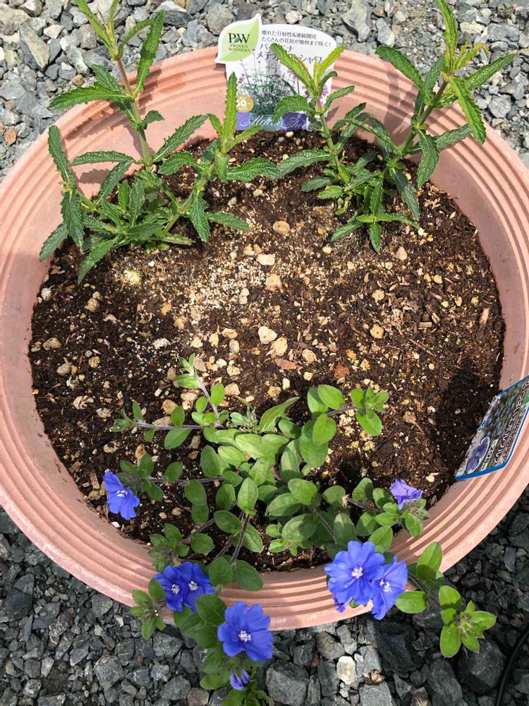 この2種の寄せ植えも、植え付け8日目ですがどんどん大きくなっています✨