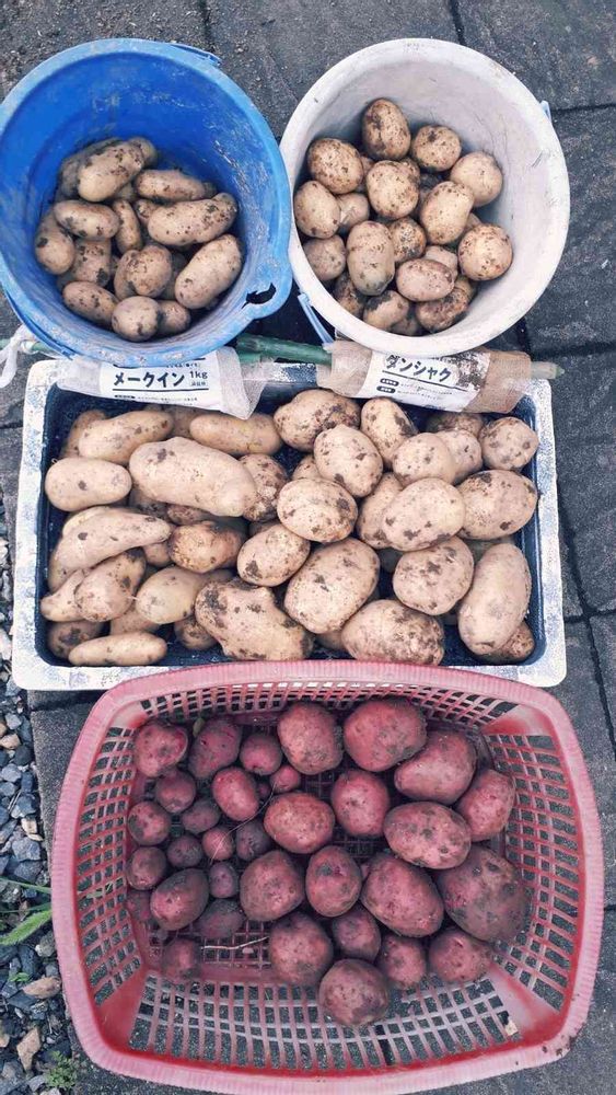 今年は種芋も一袋ずつだったし😞芽出しの時ネットに入れたまま、放置してたので😅取り出す時に芽を傷めて発芽が悪かったので