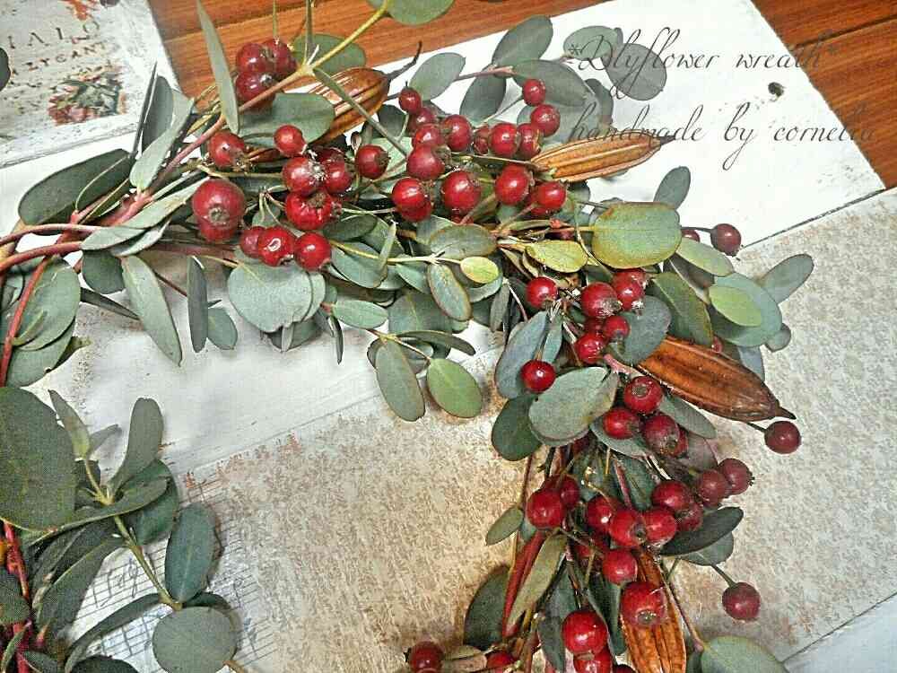 真っ赤なローズヒップさんとユーカリさんの葉っぱだけでもクリスマスっぽくて素敵なのに、シランさんの種が加わると渋さが増してカッコよくなりますね«٩(*´ ꒳ `*)۶»