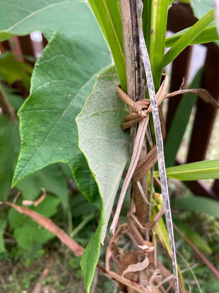 とりあえずニューサイランの枯葉で縛って保定しておきました( ;´Д`)