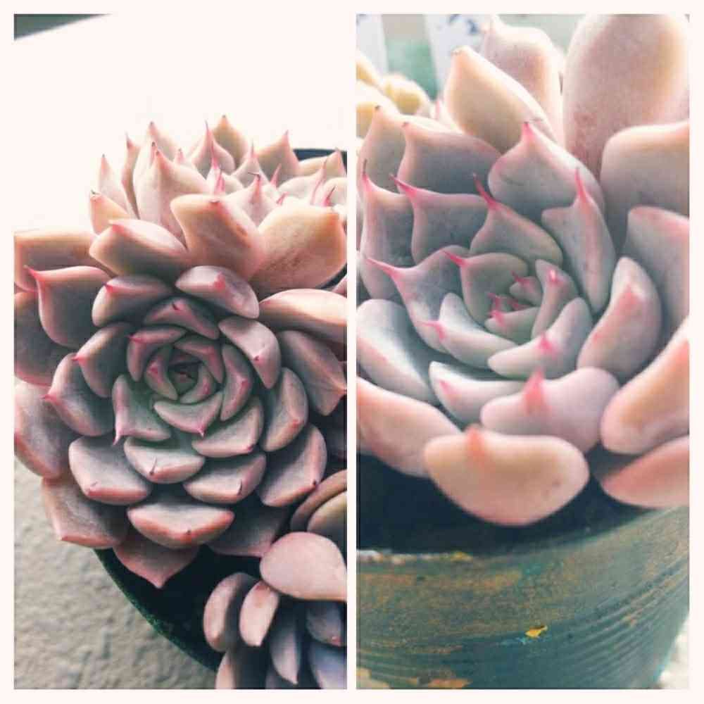 双頭の多肉ちゃん💖どちらも可愛い💖ですが、写真右側の方がつめツンツン。左側は紅葉が進んでいて濃いピンクになってます😍どっち見ても癒されます🎵