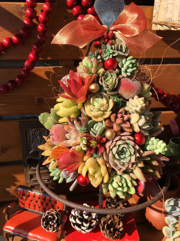 ぷりぷりの多肉ちゃんと赤やピカピカの飾りで 最高の豪華ツリー🎄ですね〜😊