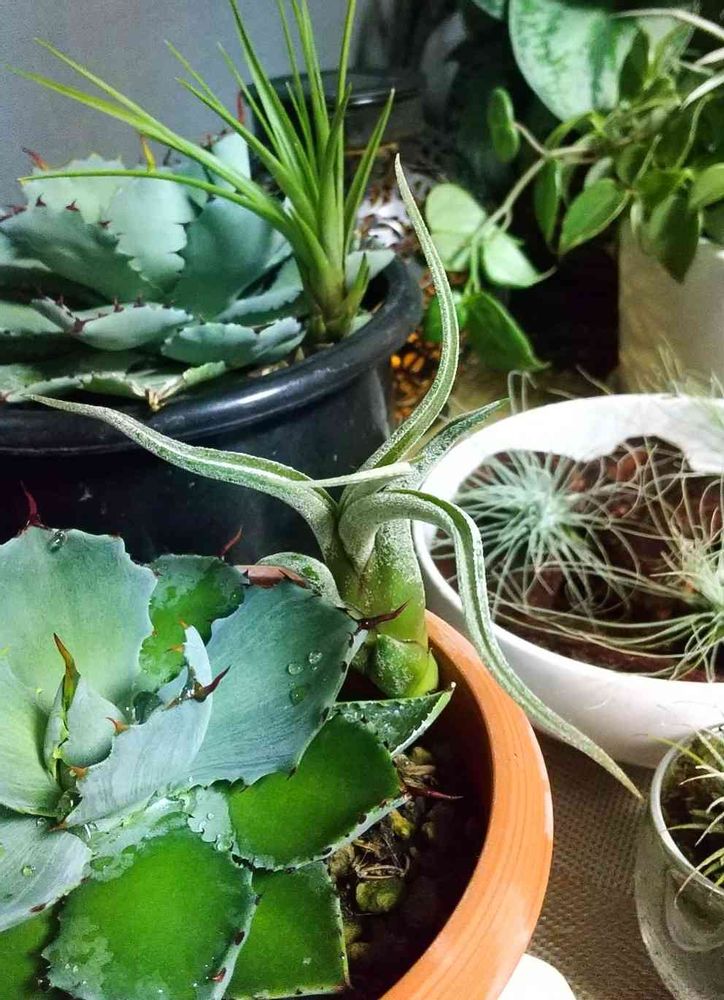 昨日、市内の別の百均でずっと欲しかった形のチランジアを見つけました。とりあえず雷神さんの隣を棲みかにしてもらい(*´▽`*)