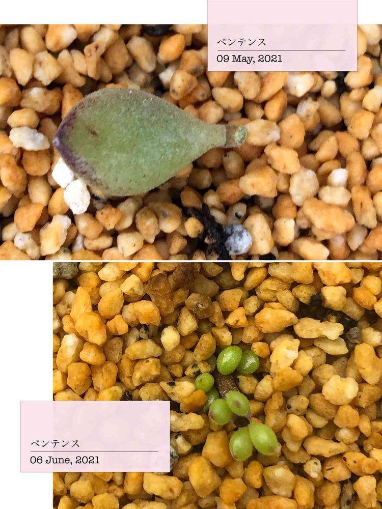 先月ベンテンスが葉っぱ一枚しか残っていないから、枯れるかと心配してましたが、今日だった一枚の葉っぱが取れて、新芽🌱発見🥰