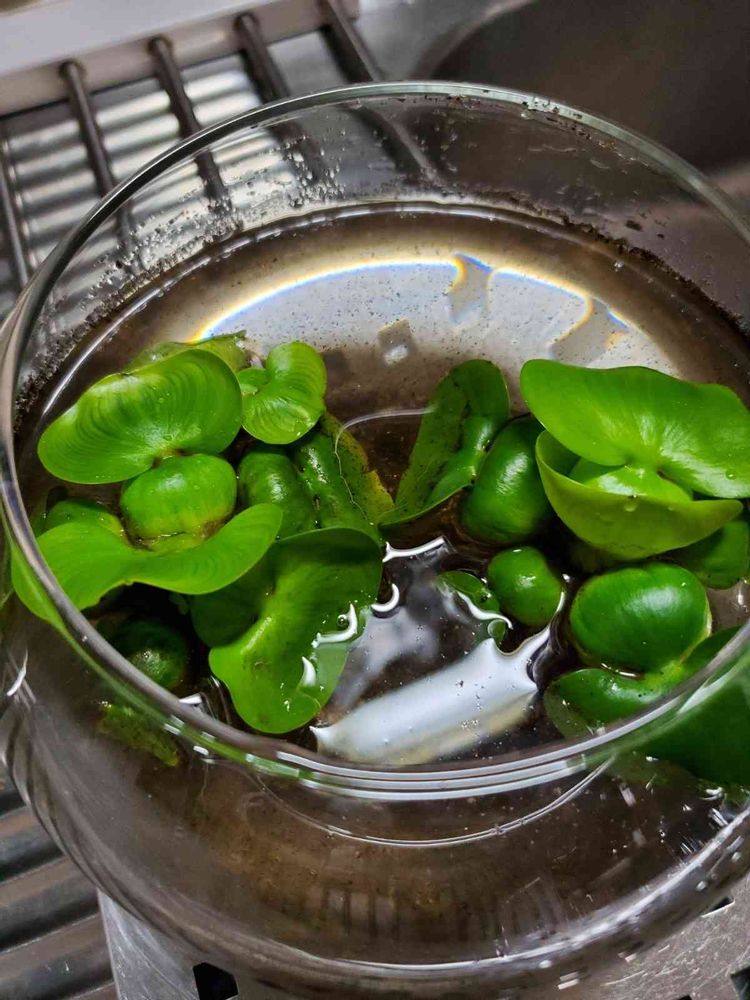 とあるお宅の玄関前にご自由にどうぞ、とホテイソウの子株が置いてあったので1つもらって帰りました。