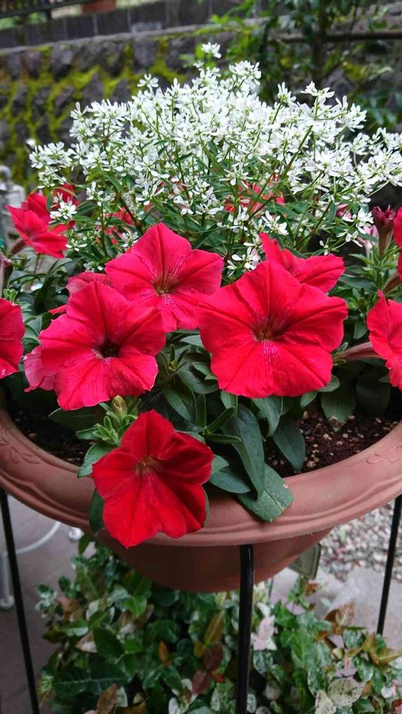 ペチュニアとダイヤモンドスノーがもりもりしてきました🎵