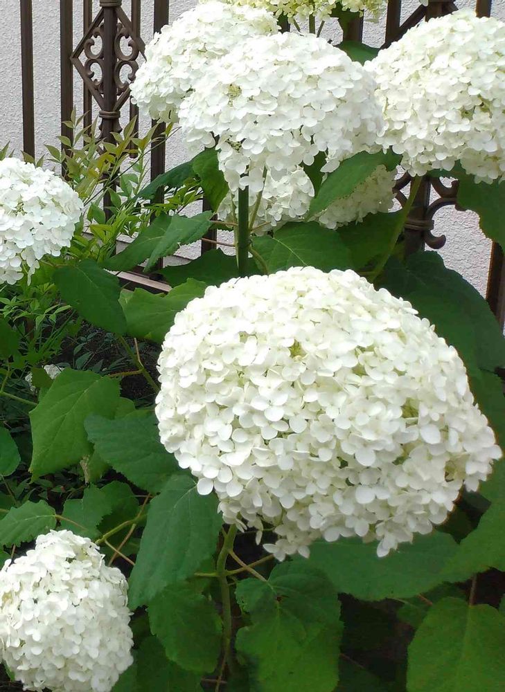 アナベルが黄緑から白になりました!、 手前の花は私の頭よりデカイ!