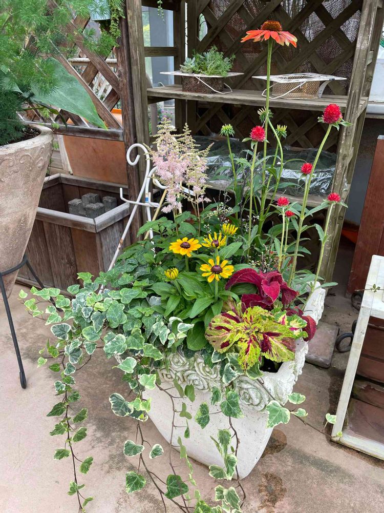ルドベキアやアスチルベまで入ってとってもゴージャスな素敵な寄せ植えですね💕