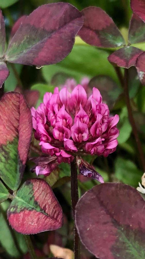 シックな葉色のクローバーからとても素敵なグレープカラーのお花が咲きました。