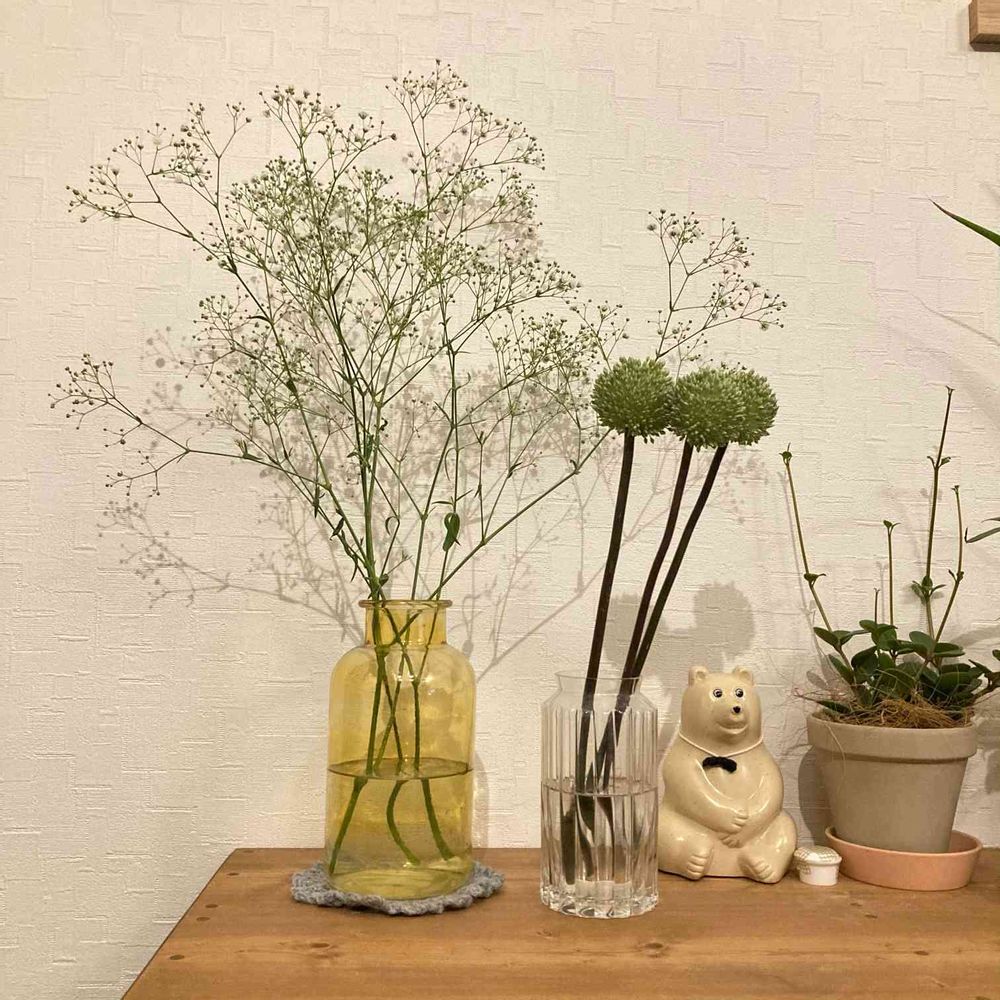 大好きなカスミソウと、この前公園の花壇に植えてあるのをみて一目惚れしたアリウムを発見したので買ってしまった。このボンボンかわいすぎる…