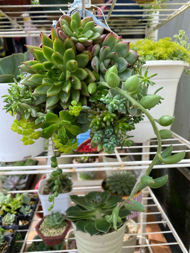 何がどうなってるかは分からないけどぶら下げ寄せ植えかっこいいですね(͒ ॢ ›⚇‹ ॢ)͒୭♡