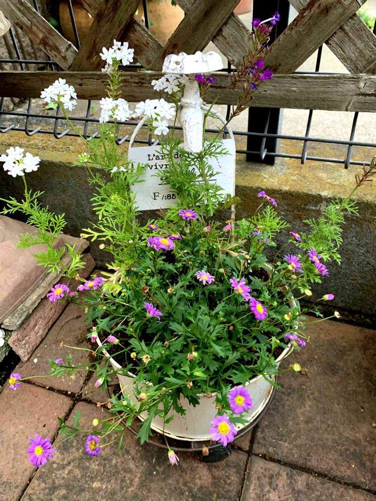 宿根草のバーベナとブラキカム(ブラスコバイオレット)の寄せ植えをした🙆♀️😃