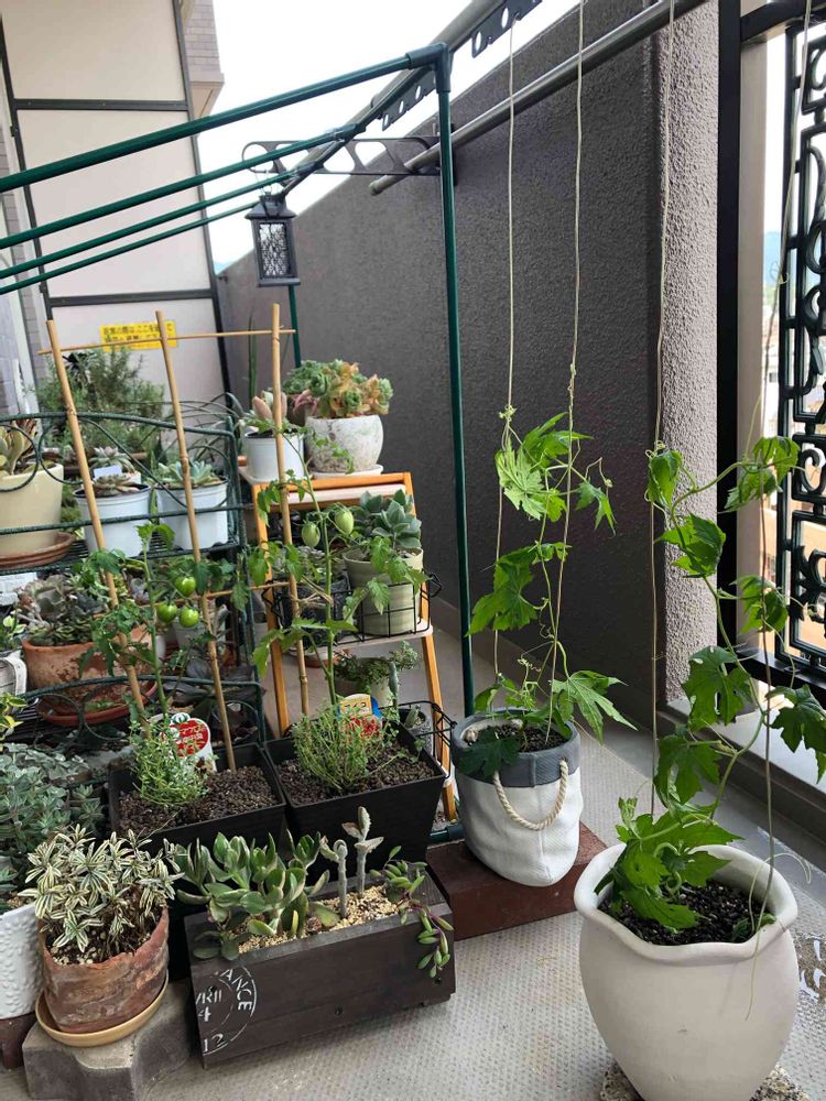 私もベランダでネットを物干し竿に固定して作ったことあります。思った以上に実りました。👍✨キュウリも良いですよ。是非一緒に😍❤️