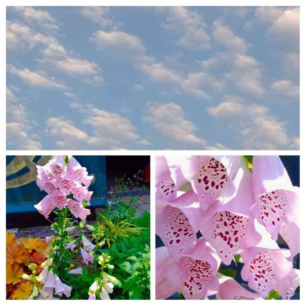 引越し準備に疲れはて、温泉行く前に去年行ったペンションに寄ってお蕎麦食べて来ました、お庭に夏の花が咲いてて綺麗、蕎麦も天麩羅も美味しい💗空は昨日の夕暮れ前の雲