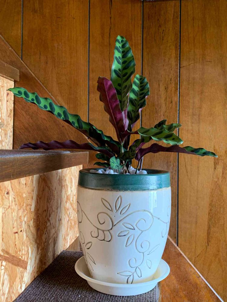 カラテアも植え替えました。使ってなかった焼き物の鉢です。最初のポットからいきなり容量増やしてしまいました😅