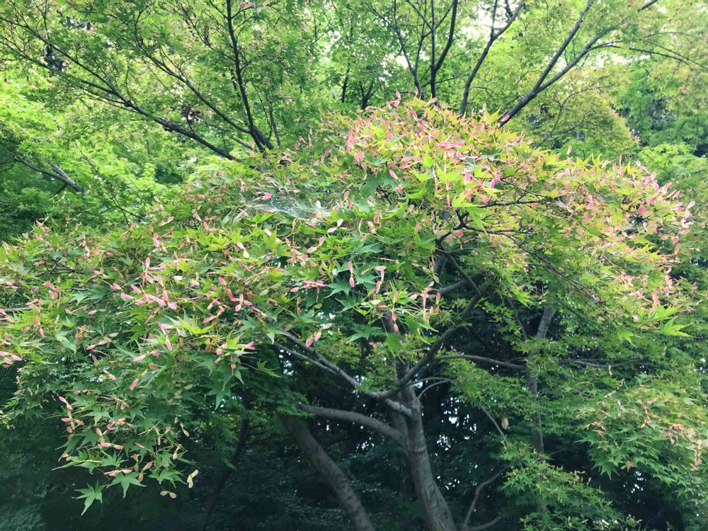 いろはもみじのたねが、ぴんくいろにいっぱいなってました。そのあとは、とんでいきました☺️これから、もみじ🍁のきせつですね😄