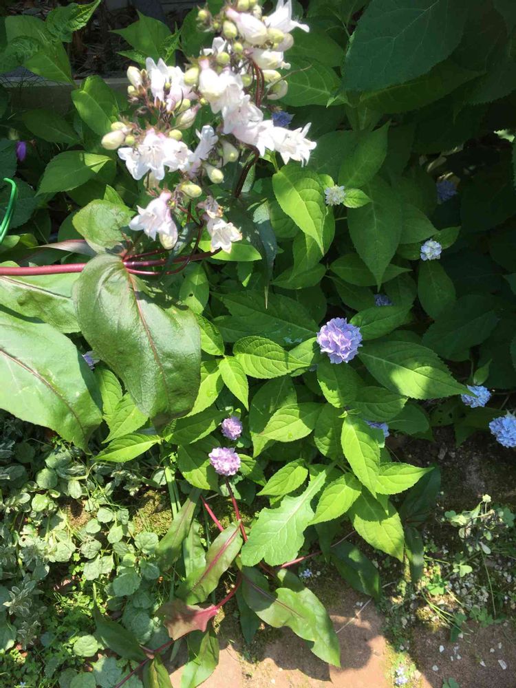 その下のは2年前に安くなっていたと言って息子が買ってきてくれた紫陽花。ようやく開花しましたが小さな花のタイプ?名前はわからない。