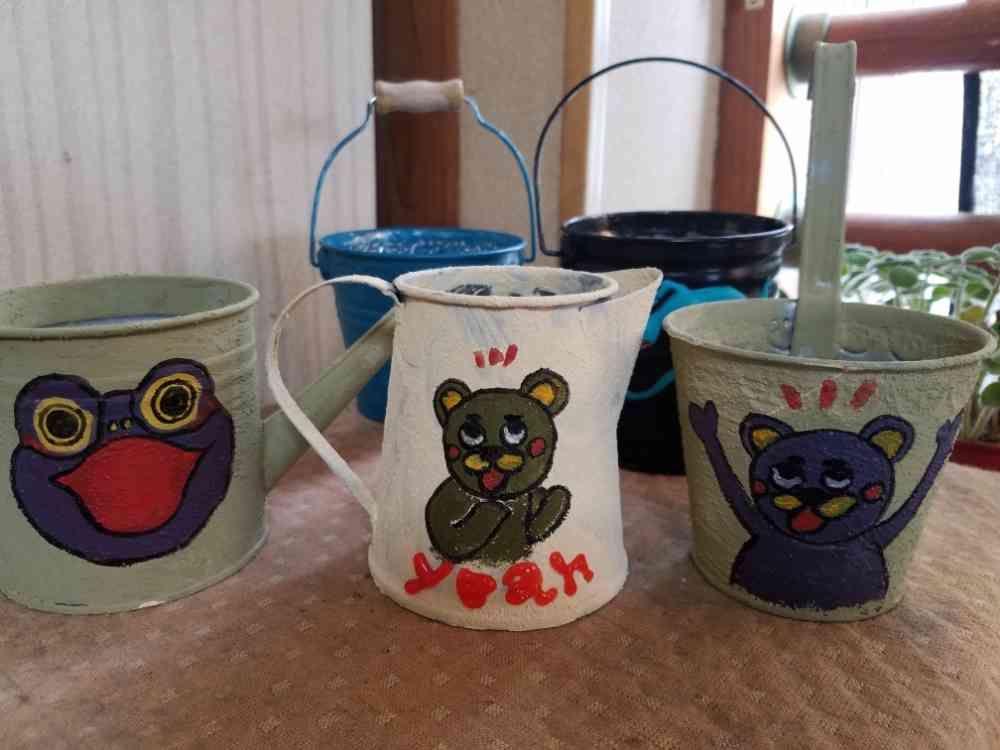 下地だけ塗ってた缶に、ようやく絵つけー🙌