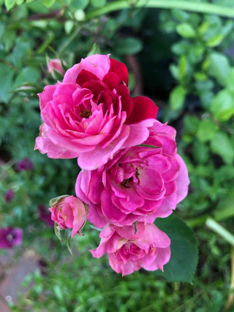 何年も咲いていますが、こんな色に咲いたのは、初めて❣️ピンク一色だったのに、紅色が。先祖返りというやつでしょうか?