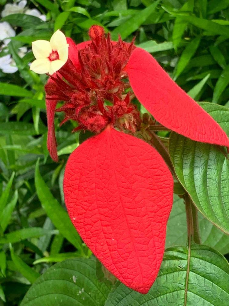 見たことのない、インパクト大の真っ赤な萼と可愛いお花❤️