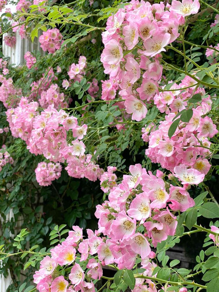 また私の子どもの頃の話になりますが、実家のフェンスに濃いピンクの小輪のつるバラがありました💕