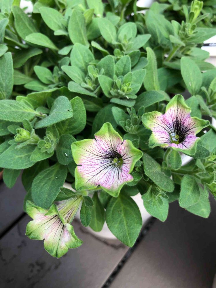 このペチュニアは購入時からしっかりとした株だったので、摘芯2回であとは自由に咲かせることにしました☺️なんとも言えない色合いが気に入っています💕
