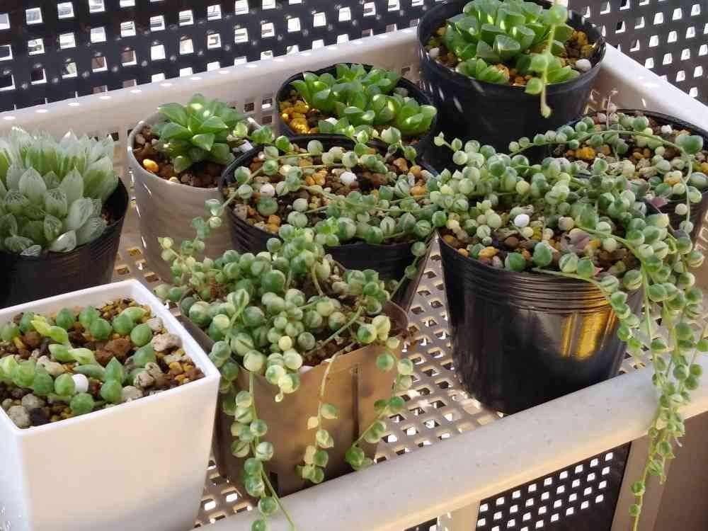 斑入りのネックレスとハオコーナー。良く日のあたるベランダだけど、あみあみの隙間からだからこの子たちにはちょうどいいかな?今のところは…