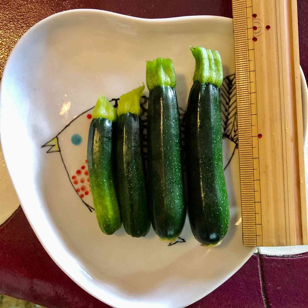 今日は大きくならなかったミニミニズッキーニ4兄弟を収穫😅