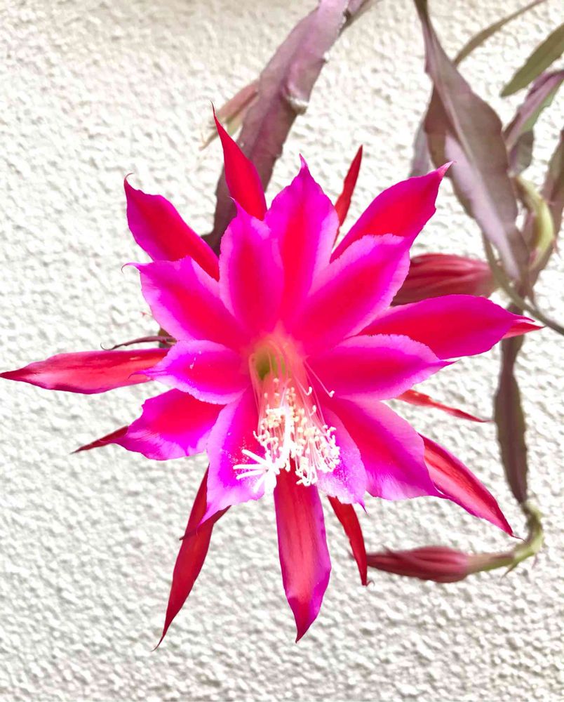 クジャクサボテンの鮮やかな濃いピンクのお花…物凄い存在感です(ᴗ͈ˬᴗ͈⸝⸝)💕
