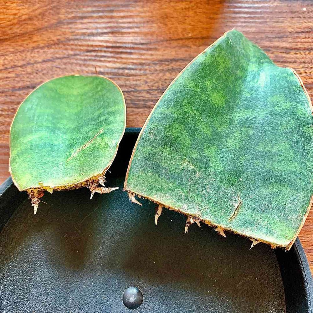 5/5にマドカズラさん降ってきて綺麗にもげたマッソニアーナさん葉挿しして1ヶ月