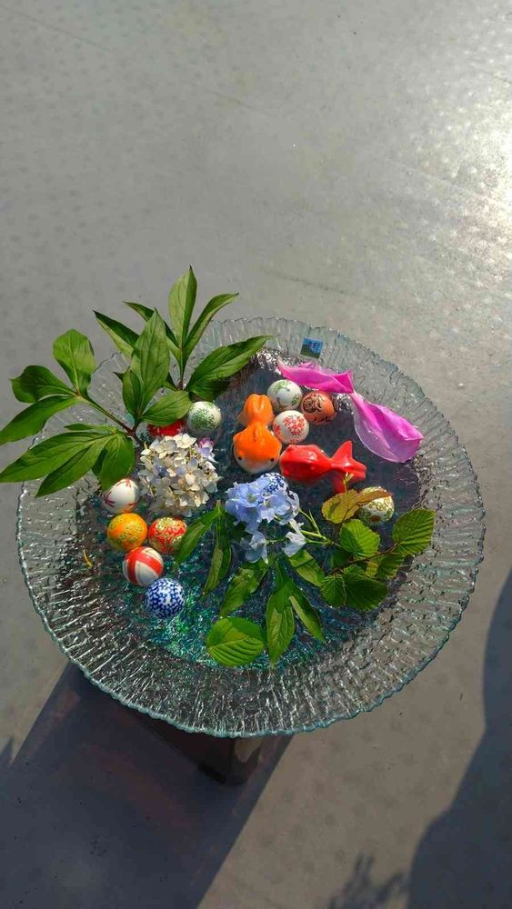 陶器の浮き玉カラフルでかわいいです🌟昨日届いたばかりのもので(o^-^o)🌠花も葉っぱもあるから配置が無限です(*^-^)🌠♾️