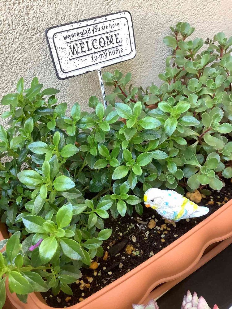 ミンティアは触るとミントのいい香り。ドラゴンズブラッドは香りはないものの、手触りがいい。弾力があって、プニっとしています。触って癒されるコーナーです。これで花が咲いたら、言うことなし。😄