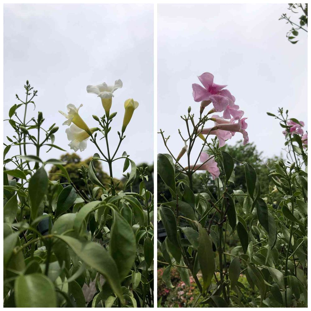 1本の木からピンクと白が咲いてる〜✨ってノッポさんの下を辿っていったら2本植わっていたわ😆