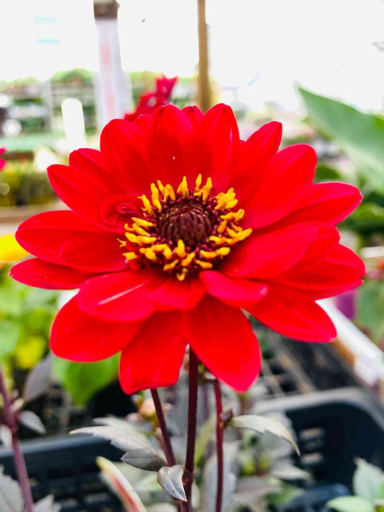 目にも鮮やかなダリアがHCで咲いていました。葉色はシックな銅葉。花は小ぶりのタイプ。